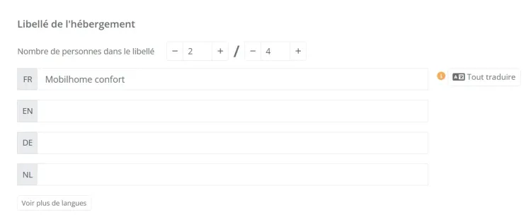 - Un bouton « Tout traduire » apparaît désormais lors de la création ou modification d’un libellé produit.